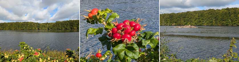 Geiseckesee, Hagebutten der Kartoffelrose, die Insel. Fotos AGON/Weigel, 14.09.2025