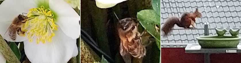 Honigbiene an Christrose und in der Warte'schlange', Eichhörnchen. Fotos B. Zollmann, 12.12.2025 |