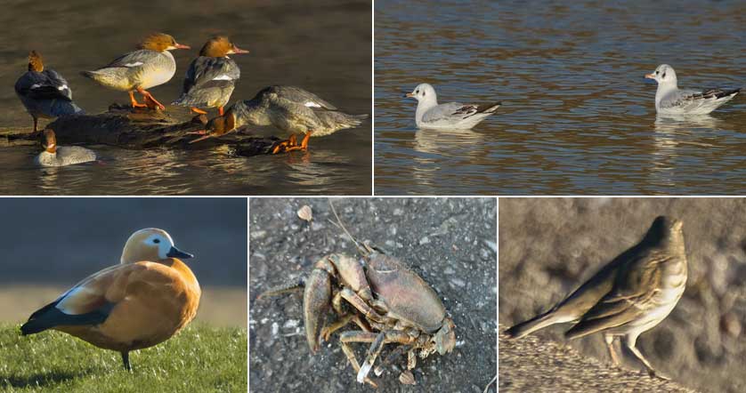 Gänsesäger, Lachmöwen - Edelkrebs (Totfund an der Ruhr!), Rostgans, Bergpieper - Fotos D.Hegebarth und AGON/Bullenda 14.12.2025 |