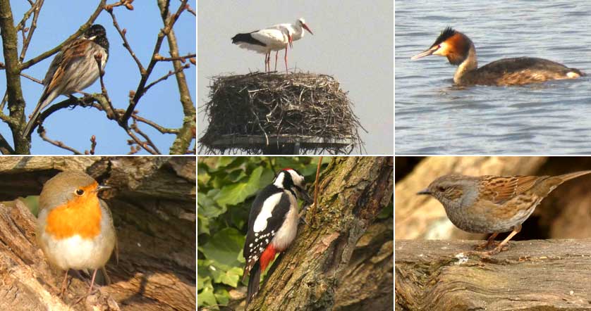 sonstige Vogelarten: Blaumeise, Kohlmeise, Schwanzmeise, Dohle, Elster, Rabenkrähe, Stieglitz, Grünfink, Buchfink, Amsel, Rotkehlchen, Ringeltaube, Mäusebussard, Eichelhäher, Grünspecht;