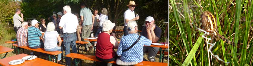 Haus der Hain-Bänderschnecke Kleinblütige Königskerze, Blutweiderich - Ackerhummeln am Blutweiderich, Blaugrüne Mosaikjungfer fliegend überm Gartenteich, Erdhummel - Weibchen des Kohlweißlings, Faulbaum-Bläuling, Landkärtchen. Fotos AGON/Ackermann, 13.07.205 |