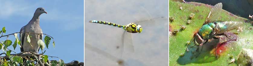 Ackerhummel, Blaugrüne Mosaikjungfer,Weibchen des Kleinen Kohlweißlings. Fotos AGON/Ackermann, 01.10.2025 |