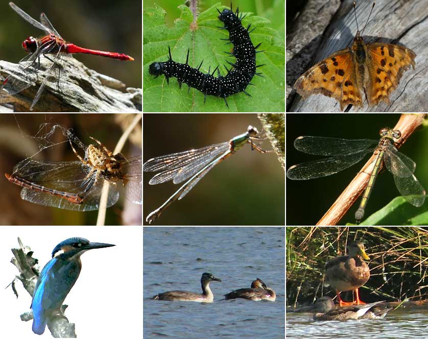 ca.330 Graugänse, ca. 65 Kanadagänse, ca. 100 Nilgänse, 7 Rostgänse, 27 Stockenten, 1 Schnatterente, 23 Reiherenten, 4 Haubentaucher, 3 Zwergtaucher, 18 Graureiher, 2 Silberreiher, 4 Kormorane, 2 Höckerschwäne, 30 Blässrallen, 1 Teichralle, 3 Eisvögel;