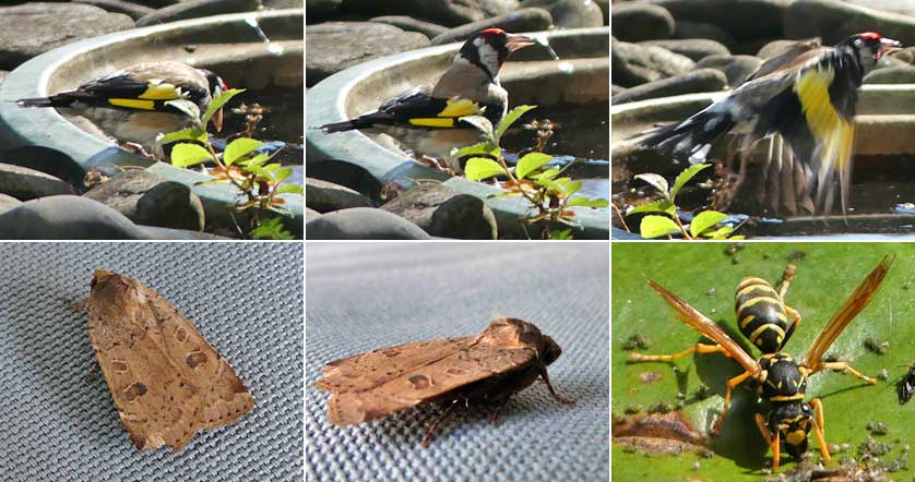 Von U.&D. Ackermann. Am Vormittag kamen wieder die zwei bekannten Libellen, am Nachmittag dann noch ein Frostspanner. Grundsätzlich scheint es so zu sein, dass man im eigenen Garten mehr Insekten zu sehen bekommt als in "freier Natur". Allerdings ist der Gartenteich auch ein Anziehungspunkt für Insekten, die einen Teil ihres Lebens im Wasser verbringen.