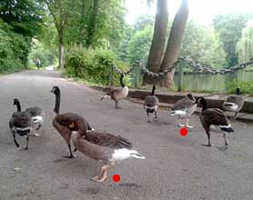 Haubentaucher, Nilgänse und Graugänse mit Jungen. Fotos P.Krüger, 24.04.2017 |