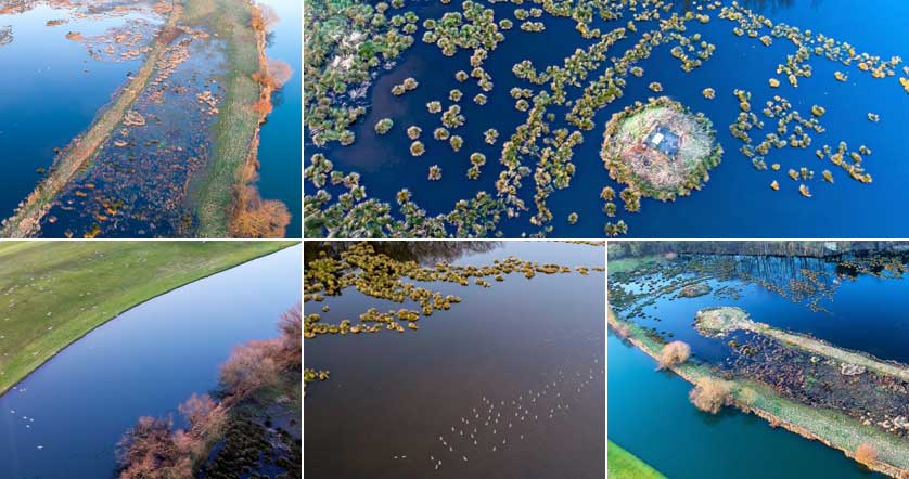 Anmerkung D.A.: Zu diesem sehr schönen Bild bei erhöhtem Wasserstand wäre ein Vergleich gut gewesen bei sehr niedrigem Wasserstand, also als das Wasser gerade wieder stieg. Das war aber beim besten Willen wegen des Dauerregens nicht möglich. Die Bilder sind nicht nur informativ sondern auch noch ästhetisch schön anzusehen - wobei mein Favorit das breite Bild mit der runden Insel ist.