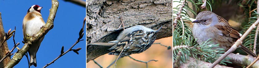 von oben links: Heckenbraunelle, Gartenbaumläufer - Buchfink, Buntspecht. Fotos AGON/Kruse, 16.01.2018 |