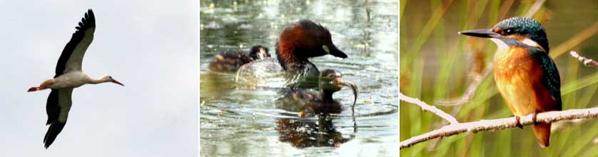 Jeweils: Storch, Zwergtaucher mit Nachwuchs und Eisvogel. Obere Reihe: Foto K.Matull, untere Reihe: Foto P.Krüger, 17.06.2018 |