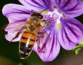 Am Mittwoch vor zwei Wochen schwärmten an verschiedenen Stellen die winzigen Schwarzen Weg- oder Gartenameisen. Es sind die Hochzeitsflüge. Wenn die Weibchen als künftige Königinnen befruchtet sind, sterben die Männchen ab. Eins der Nester war wohl unter einem kleinen Cotoneasterbusch. Das war nicht nur für die Ameisen besonders bequem, da sie von den oberen Blättern gute Startmöglichkeiten hatten. Auch in diesem Sommer wurden wieder die unscheinbaren Blüten des wilden Weins (Parthenocissus) eifrig von Bienen besucht. Dabei müssen sich die Bienen offenbar nach dem Geruch orientieren, denn auffällige Blütenblätter spart sich der Wein. Der ausgefahrene Rüssel und die gelben Höschen der Biene lassen darauf schließen, dass sowohl Nektar als auch Pollen gesammelt werden.
