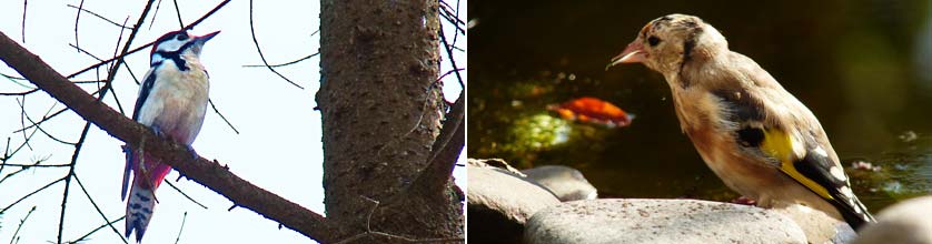 Buntspecht und junger Stieglitz. Fotos AGON/Ackermann, 13.09.2020 |
