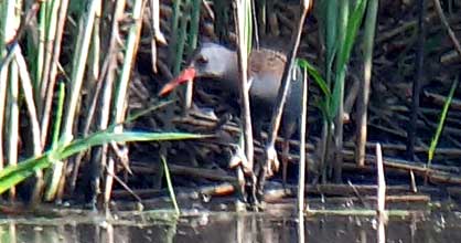 Unter der Vogelfütterung bemühte sich eine putzmuntere Schar junger Wanderratten, das herunter gefallene Futter zu vertilgen. Der Buntspecht bediente sich an einer der Fütterungen und warf mehr herunter als er fraß - sicher sehr zur Freude der Ratten. Da wollte natürlich auch der Eichelhäher seinen Anteil haben. Im westlichen Hintergrund planschten einige Graugänse herum. Sonst war es auf der Wasserfläche eher ruhig. Eine Löffelente, mehrere Reiherenten, einige Schnatter- und Stockenten gingen der Nahrungssuche nach oder ruhten in den Resten der Binsen. Eine Graugans hat sich tatsächlich in einer Bülte ein Nest gebaut. Der Zwergtaucher hatte anscheinend weniger Glück bei seinen Tauchgängen als der Eisvogel und das Teichhuhn braucht sich zurzeit vor den nur noch wenigen Blässhühnern nicht in Acht zu nehmen.
